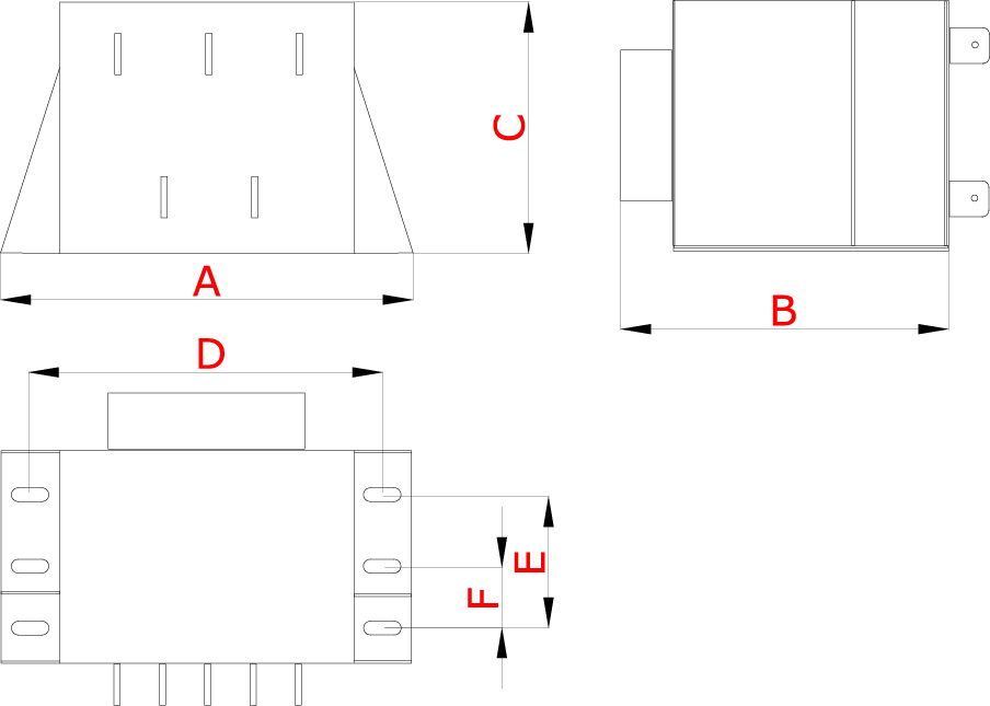 These transformers offer the same performance as the T4B series, but with connection by flat quick-connect terminals (6.3×0.8).